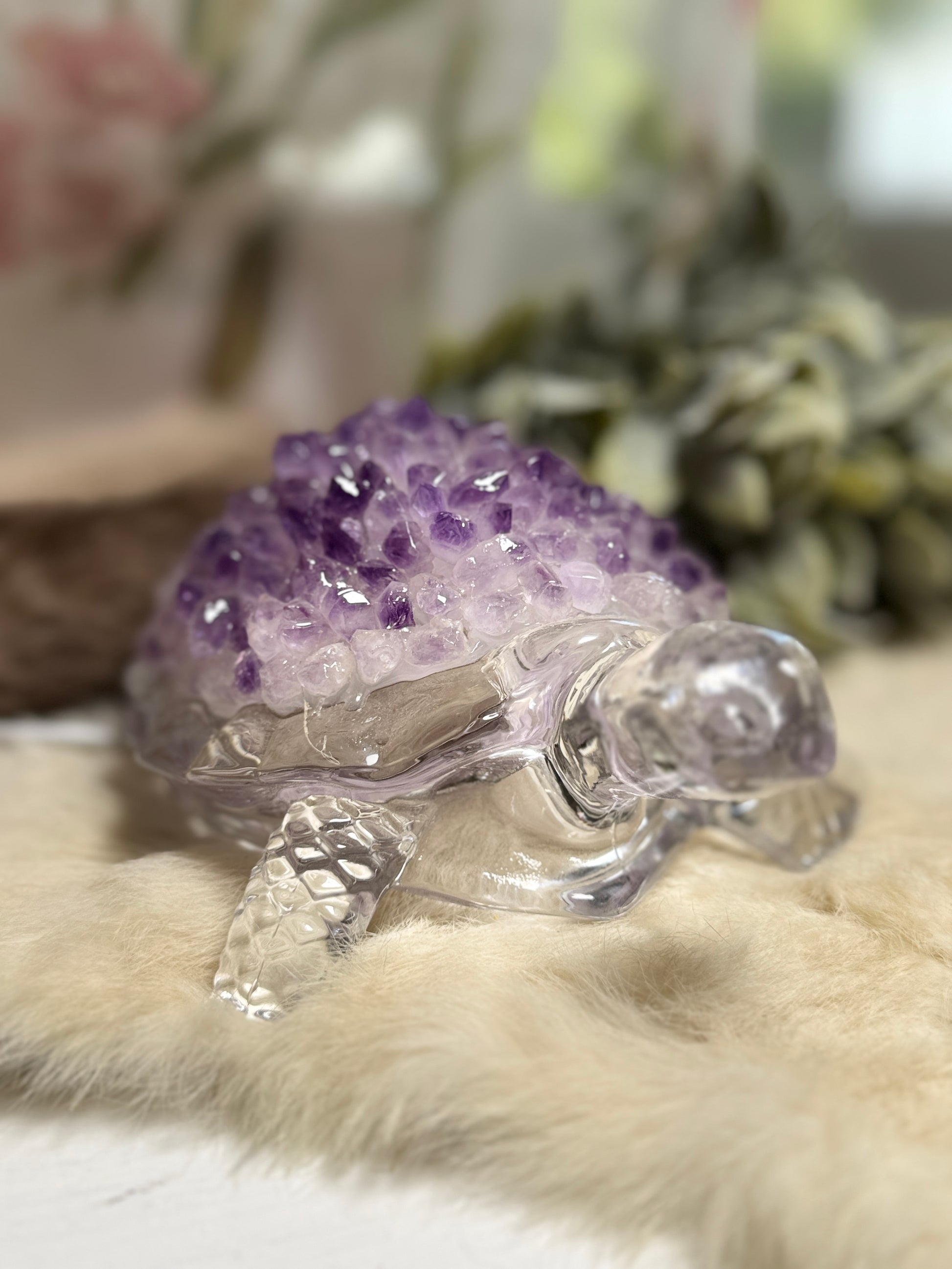 Whether placed in your sacred space, beside your bed, or on your desk, the Amethyst Turtle Lamp infuses your environment with gentle clarity and heart-centered wisdom.