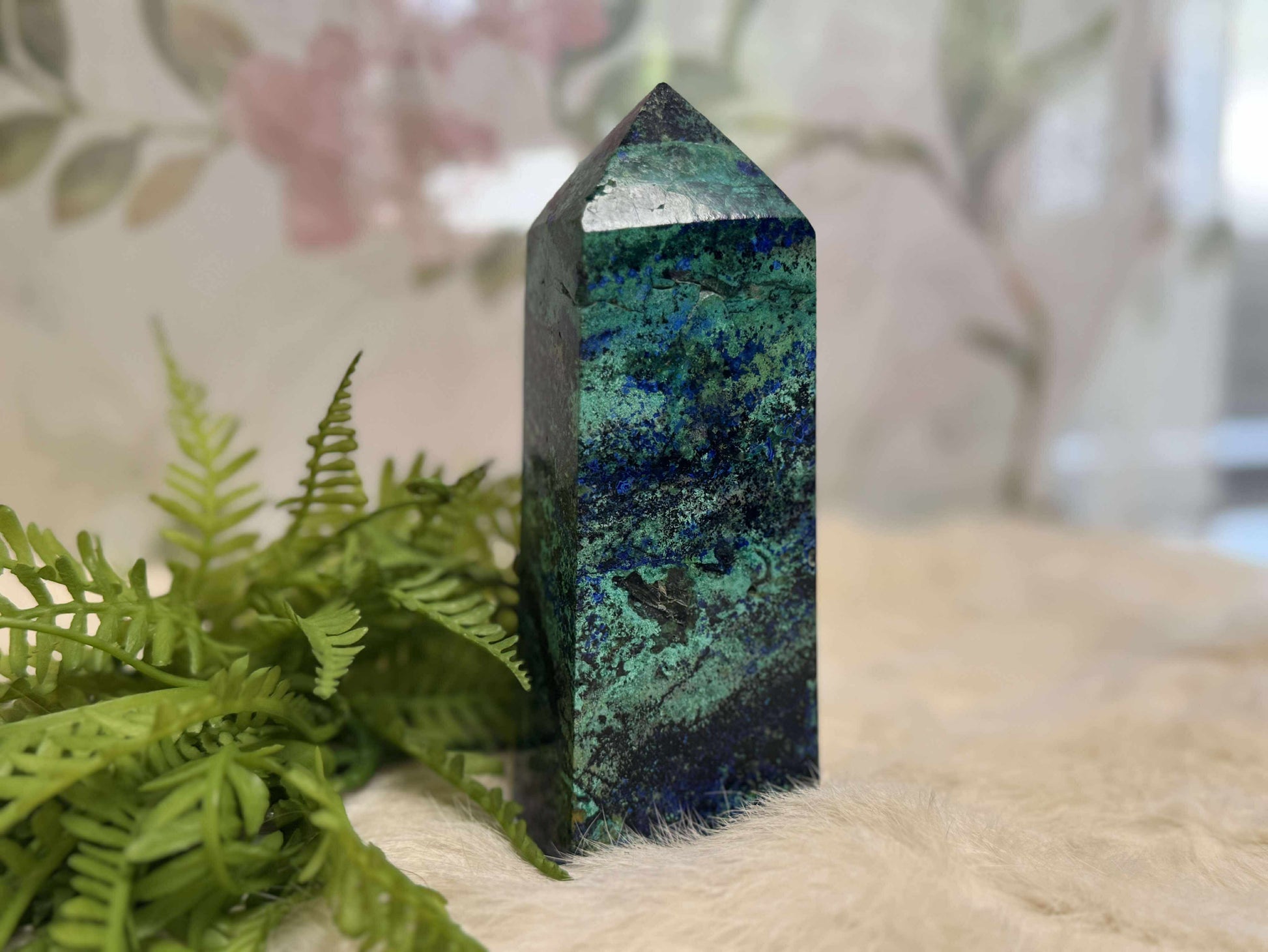 This deep-blue Azurite Tower is a portal to inner vision, spiritual truth, and quiet knowing. With its rich indigo swirls and ancient energy, it activates your third eye and clears mental fog, helping you see beyond the surface and trust what you feel in your bones.