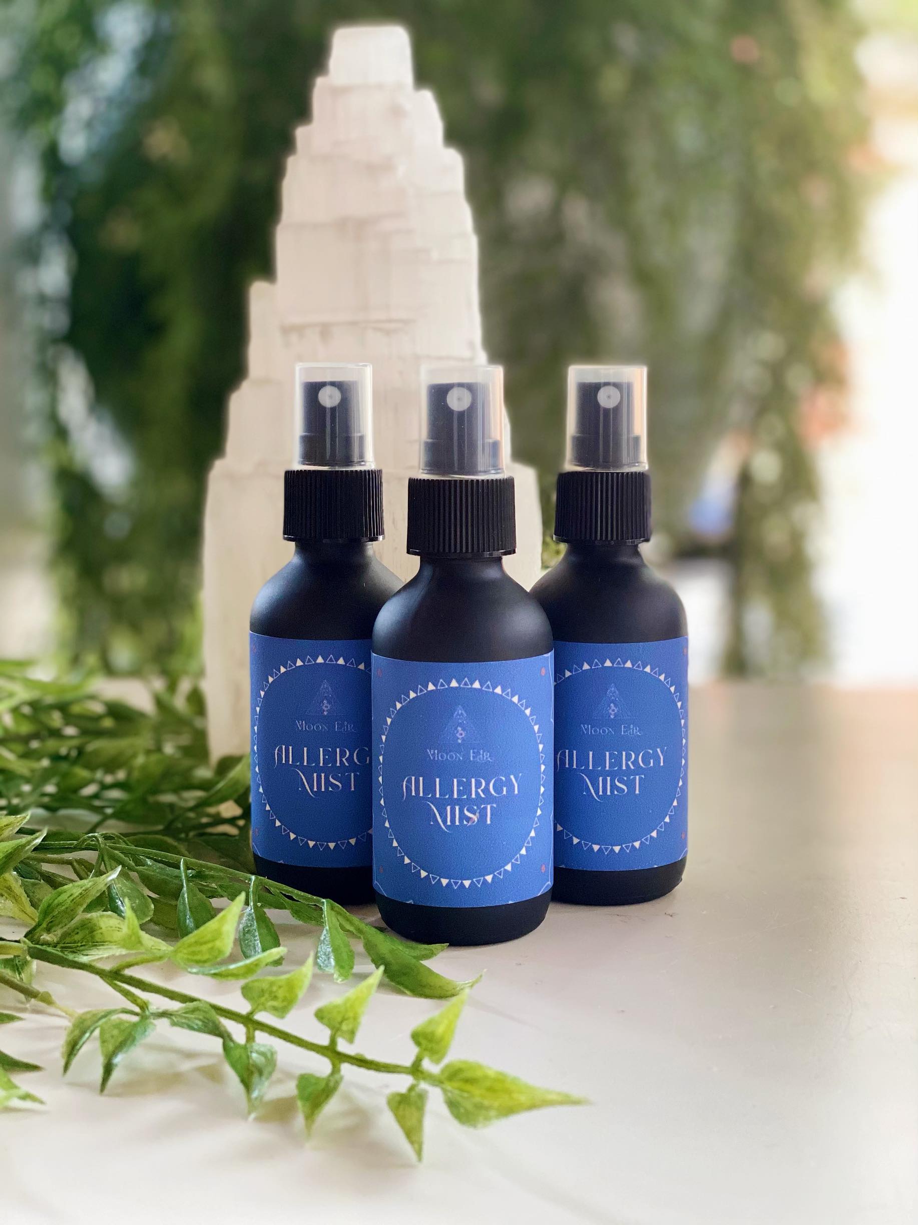 Moon came up with this unique blend of all-natural essential oils that target allergy symptoms and act fast in removing them. This mist has now become one of the most popular blends in the shop, besides the Aches n' Pains Roll On, Smudging Spray, and Fibro Bath Blend. Moon is very proud of this new brand line. You will not be disappointed!