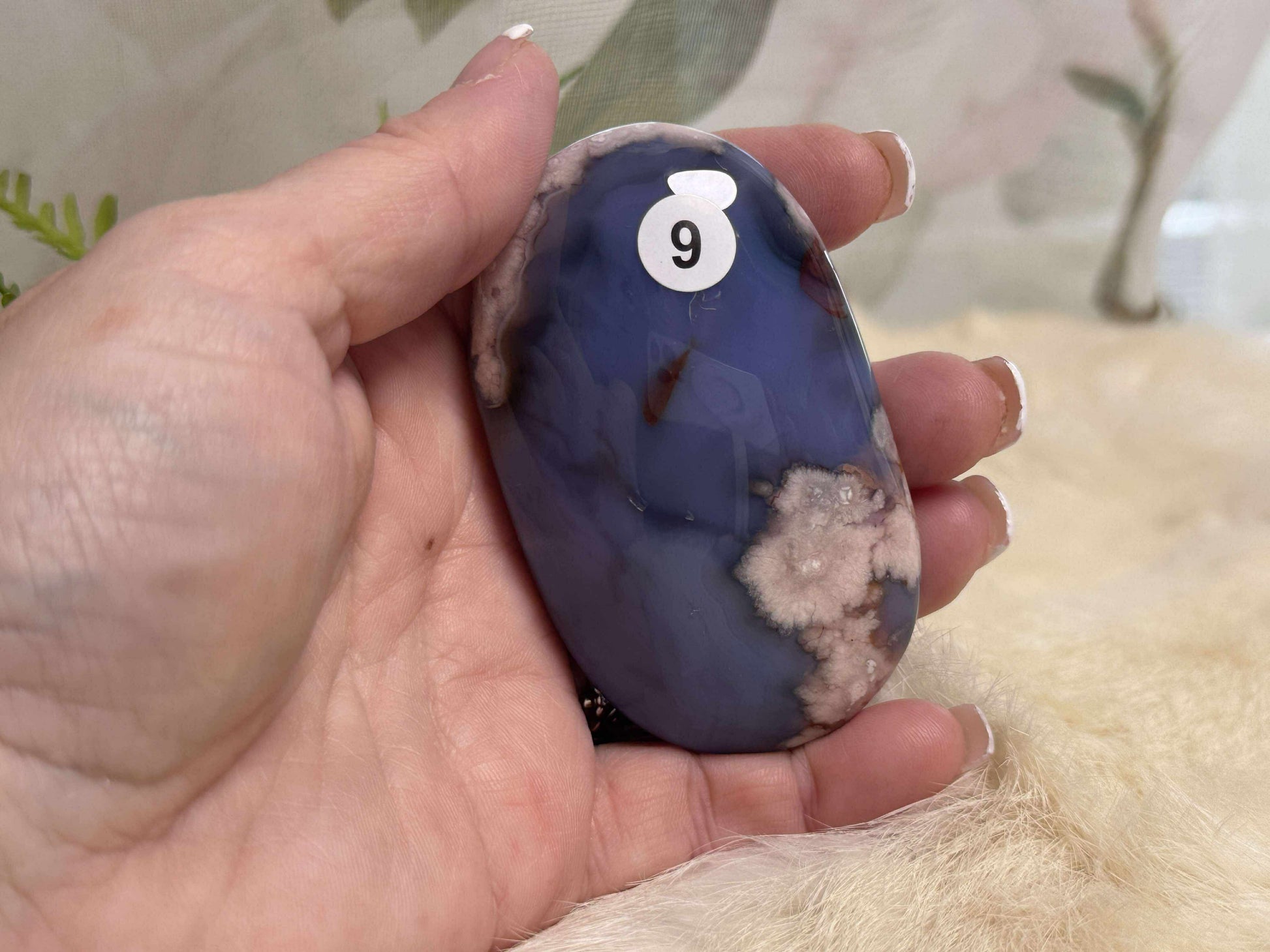 This dreamy Blue Flower Agate Palm Stone is a tender talisman for the heart and soul... blooming with delicate, petal-like plumes and soft sky-blue hues. It’s the kind of stone you reach for when you need to exhale, realign, and remember how far you’ve come.