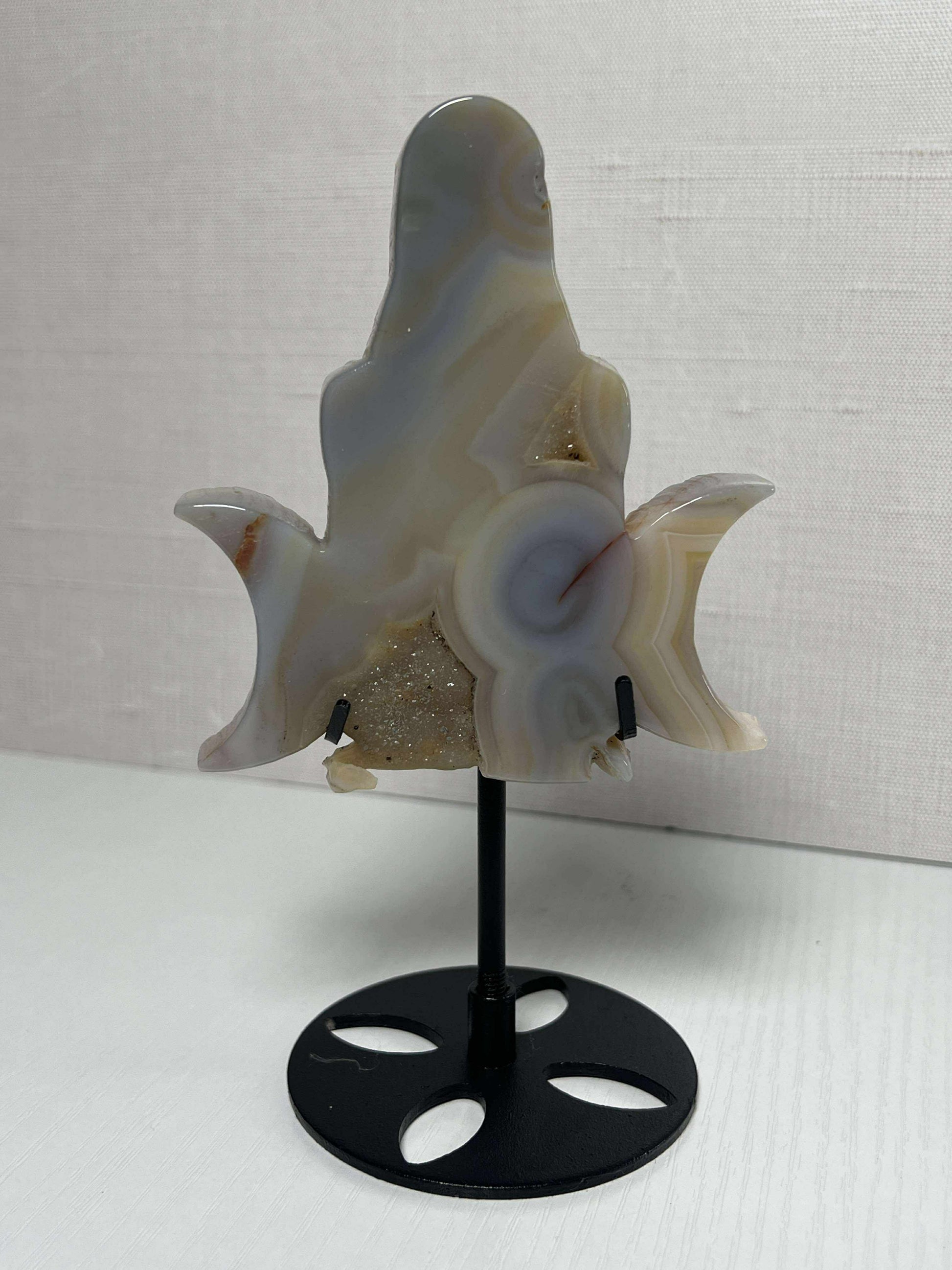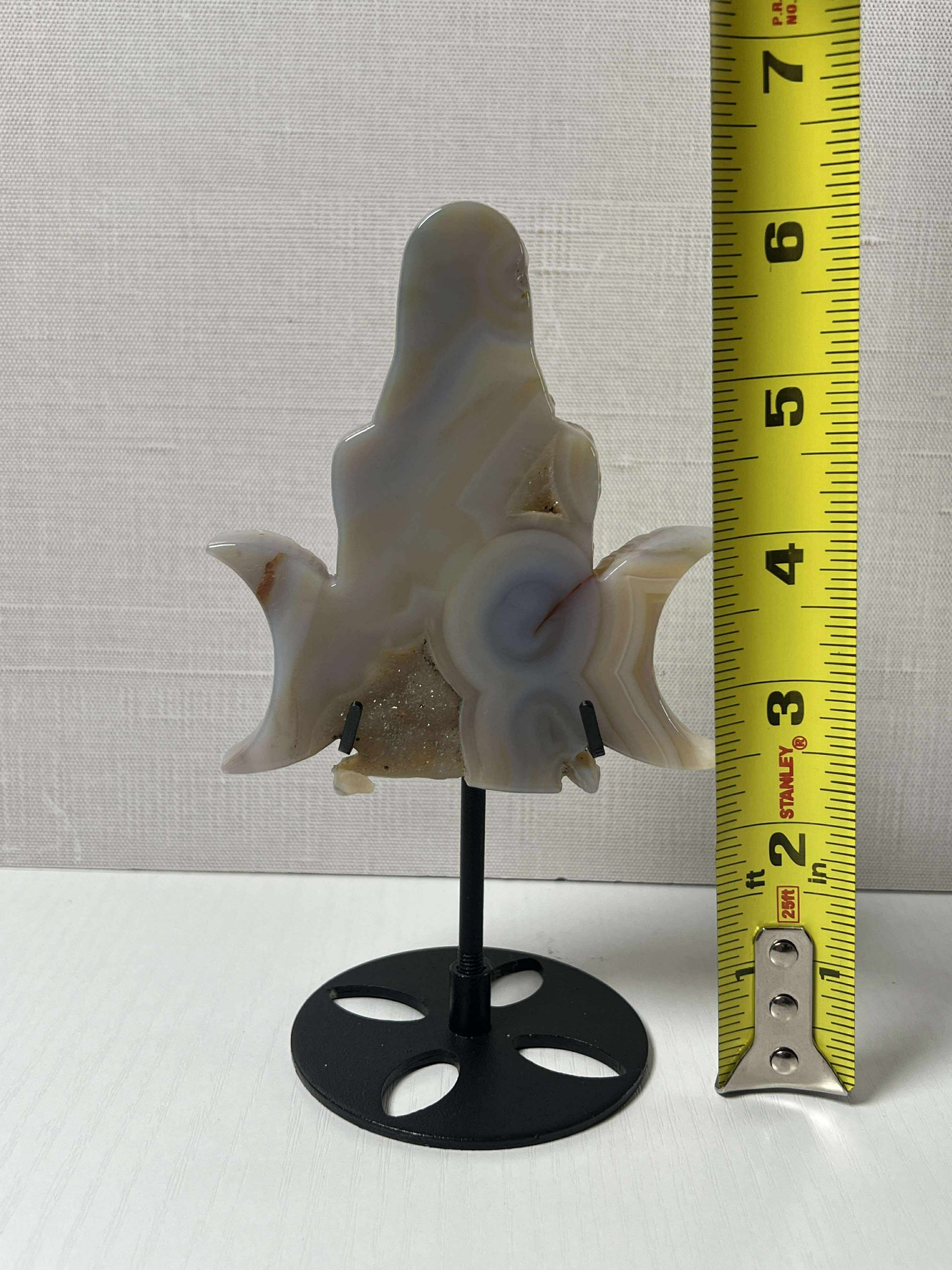 Carved into the shape of a moon-honoring feminine figure, this piece merges the nurturing energy of Agate with the sparkling mystery of a natural geode center, where transformation and ancient wisdom dwell.