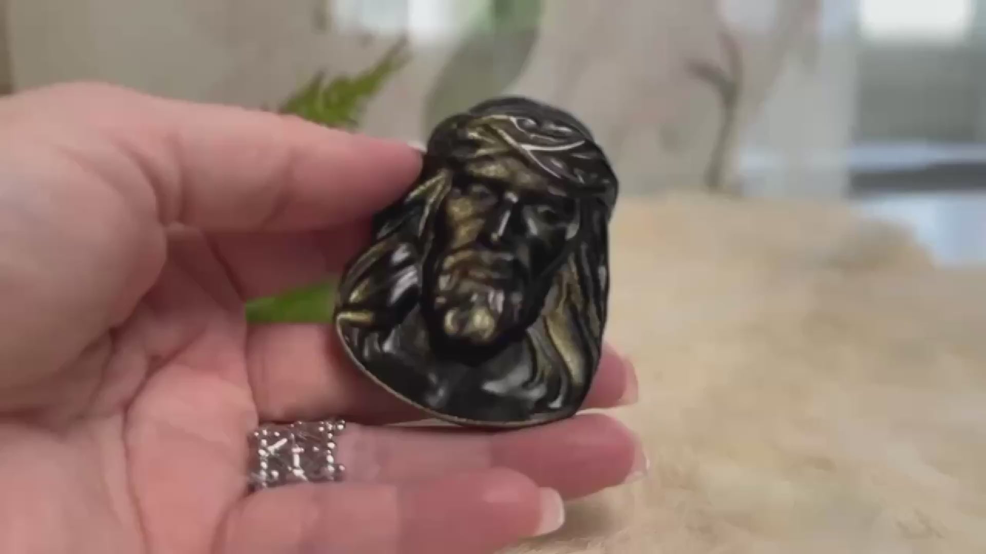 Silver Sheen Obsidian is a Stone of Lunar Protection, offering grounding clarity and energetic shielding while connecting you to your higher path. Carved into the sacred face of Jesus, this piece becomes a devotional talisman, one that holds space for quiet faith, soulful surrender, and divine connection.