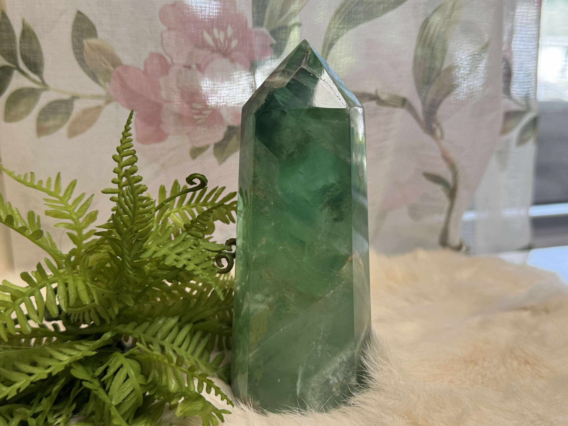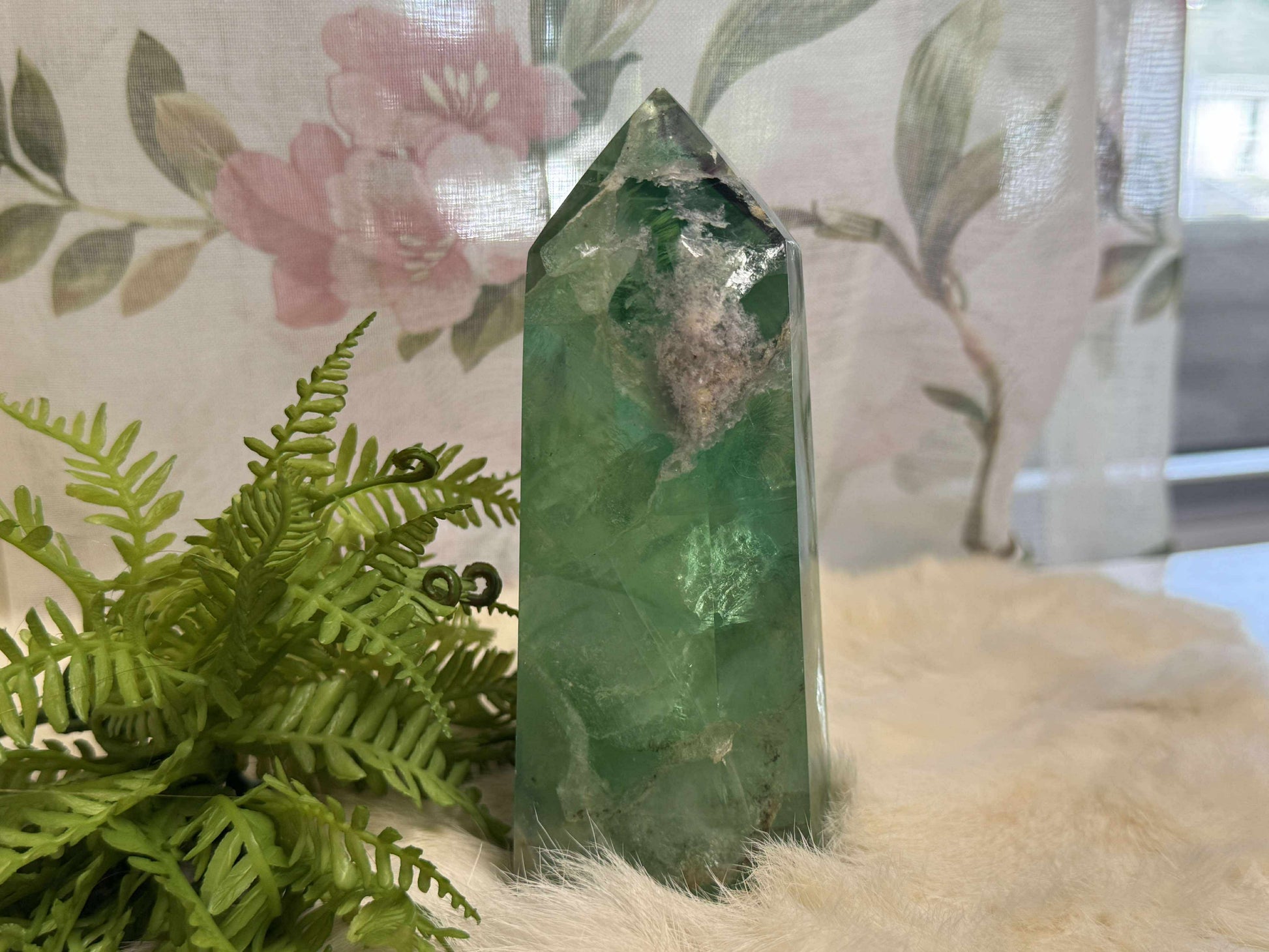 This serene Green Fluorite Tower is a pillar of peaceful progress... offering clarity, balance, and gentle emotional renewal. With soft green tones that glow like dew-kissed leaves, this piece brings a breath of fresh air to your sacred space.