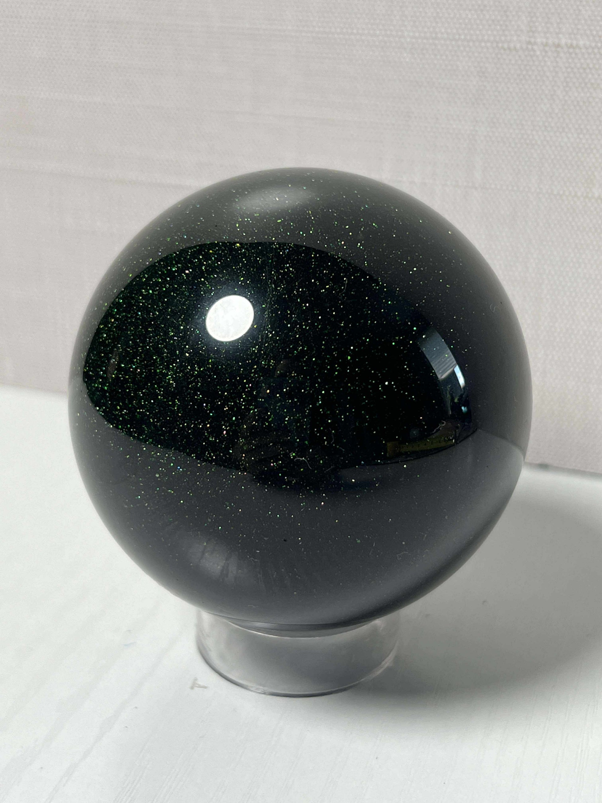 Like a glittering forest under starlight, this Small Green Goldstone Sphere sparkles with possibility and playful abundance. Though manmade, its magic is very real, born from a secret alchemy of copper and glass, infused with intention, and glowing with good vibes.