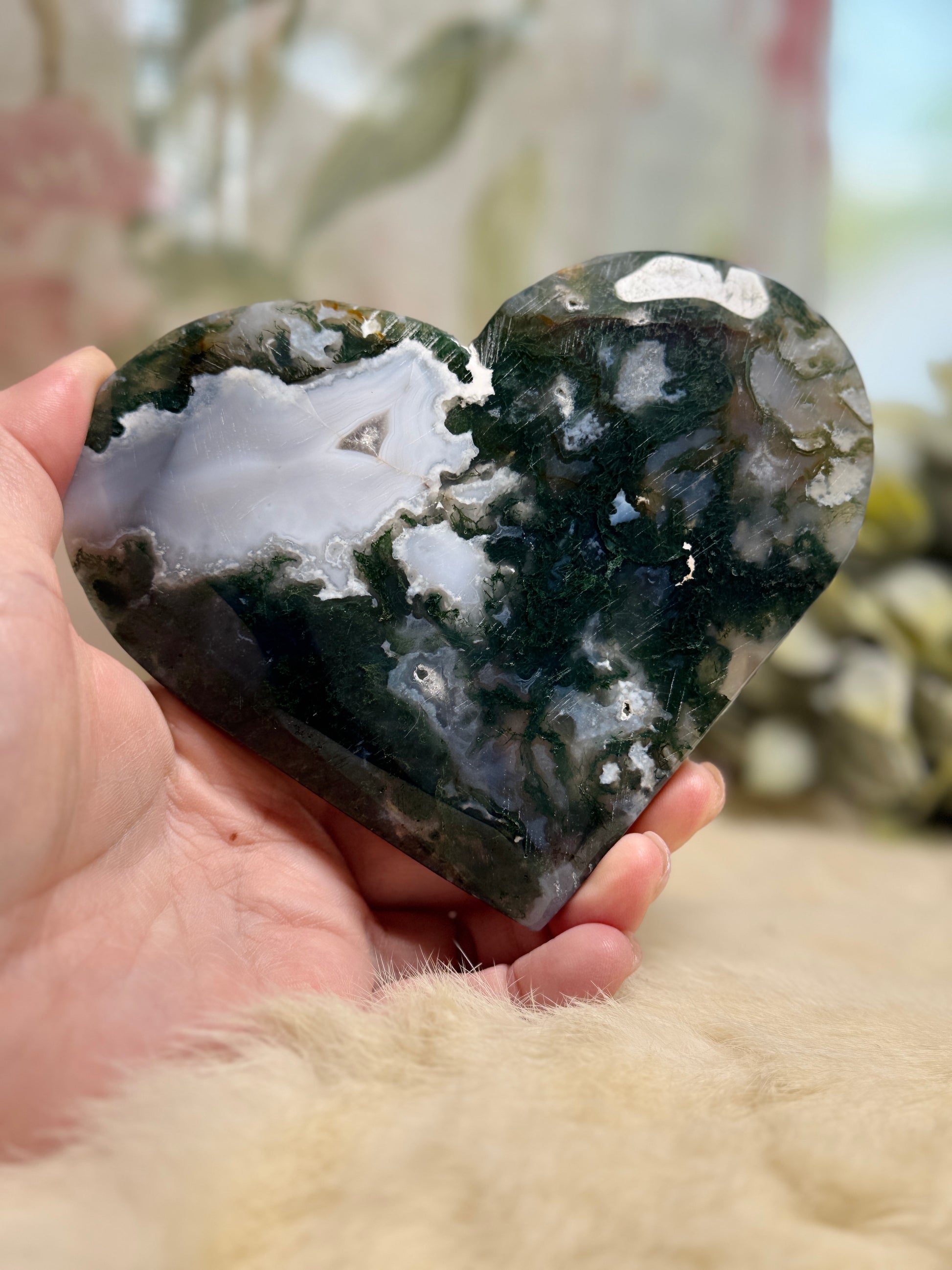 This enchanting Green Moss Agate heart is a gentle yet powerful reminder of nature’s healing embrace. With lush, moss-like inclusions flowing through a translucent green base, it feels like holding a miniature garden in your hands, a piece of the Earth’s quiet magic, shaped with love.