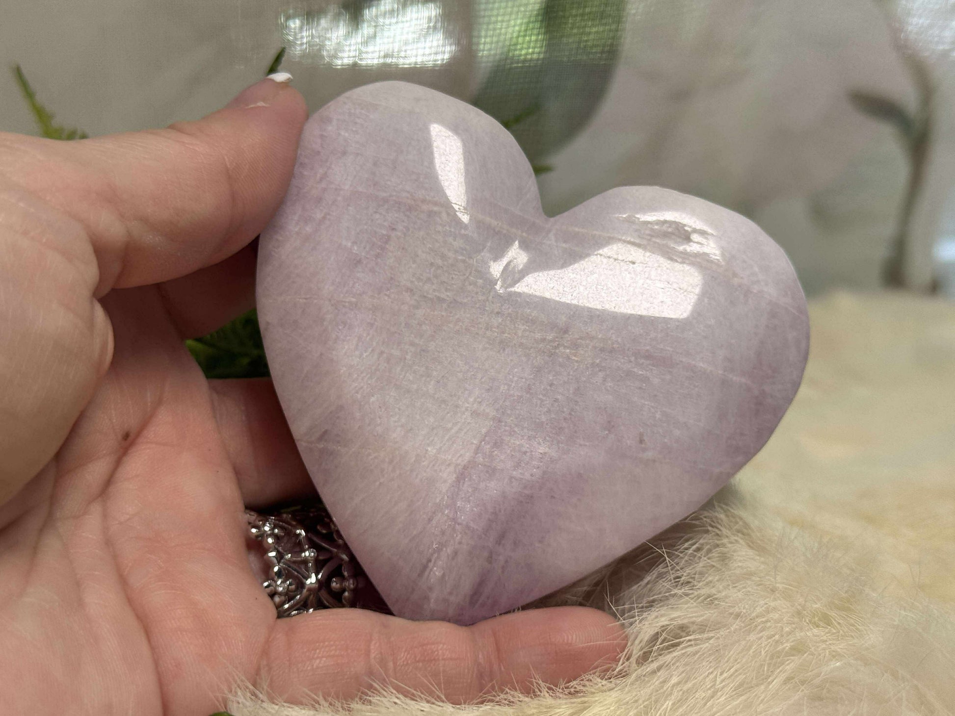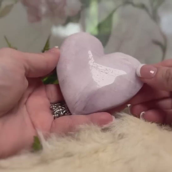 This Kunzite Heart is a gentle beacon of love... soft in hue, powerful in presence. With its serene lavender-pink tones and smooth, radiant polish, it opens a portal to compassion, emotional healing, and deep inner peace.