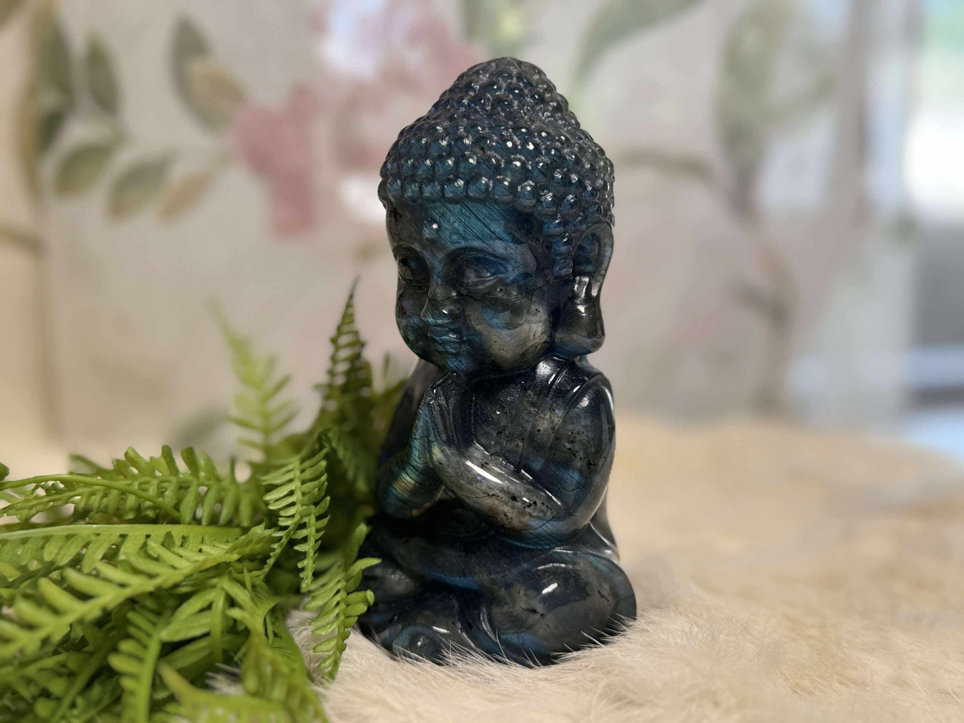 Labradorite is known as the Stone of the Mystic, offering protection, intuitive expansion, and powerful energetic shielding. The Buddha, a symbol of enlightenment, serenity, and compassionate awareness, amplifies its energy, making this carving perfect for meditation spaces, sacred shelves, or anywhere you seek clarity and higher connection.