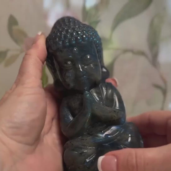 This High-Sheen Labradorite Buddha glows with otherworldly light, a sacred symbol of awakening, carved from one of the most magical stones on Earth. With flashes of blue, gold, and deep galaxy hues dancing across its surface, this piece is pure stillness in motion, a spiritual mirror reflecting your soul’s wisdom.