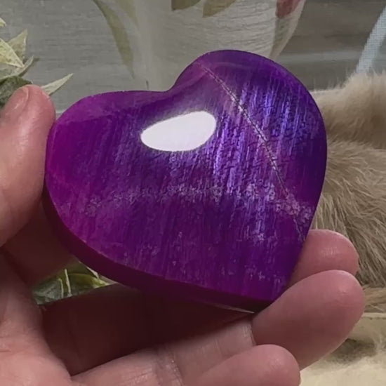 This radiant Plum Moonstone heart shimmers with an otherworldly glow, reminding you that love... for self, others, and the universe, is the ultimate guiding force. Carved into the sacred shape of a heart, it embodies compassion, tenderness, and the courage to open yourself fully to connection. Its plum-colored hues bring in the frequency of mystery, intuition, and higher wisdom.