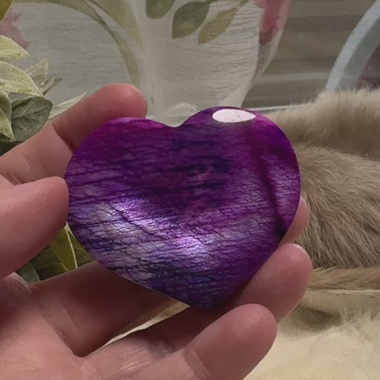 This radiant Plum Moonstone heart shimmers with an otherworldly glow, reminding you that love... for self, others, and the universe, is the ultimate guiding force. Carved into the sacred shape of a heart, it embodies compassion, tenderness, and the courage to open yourself fully to connection. Its plum-colored hues bring in the frequency of mystery, intuition, and higher wisdom.