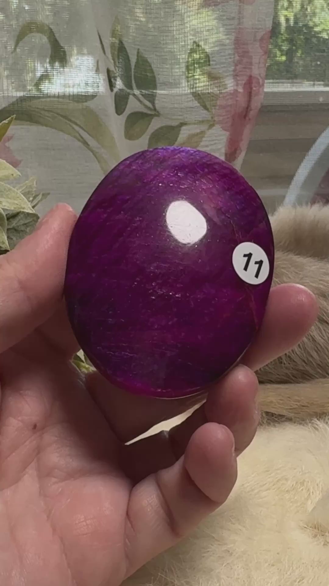Sacred Use Tip: Hold this palm stone during meditation or before bed, letting its cool surface rest in your hand. Breathe deeply and imagine its plum-colored light flowing into your aura, clearing stress and guiding you inward.