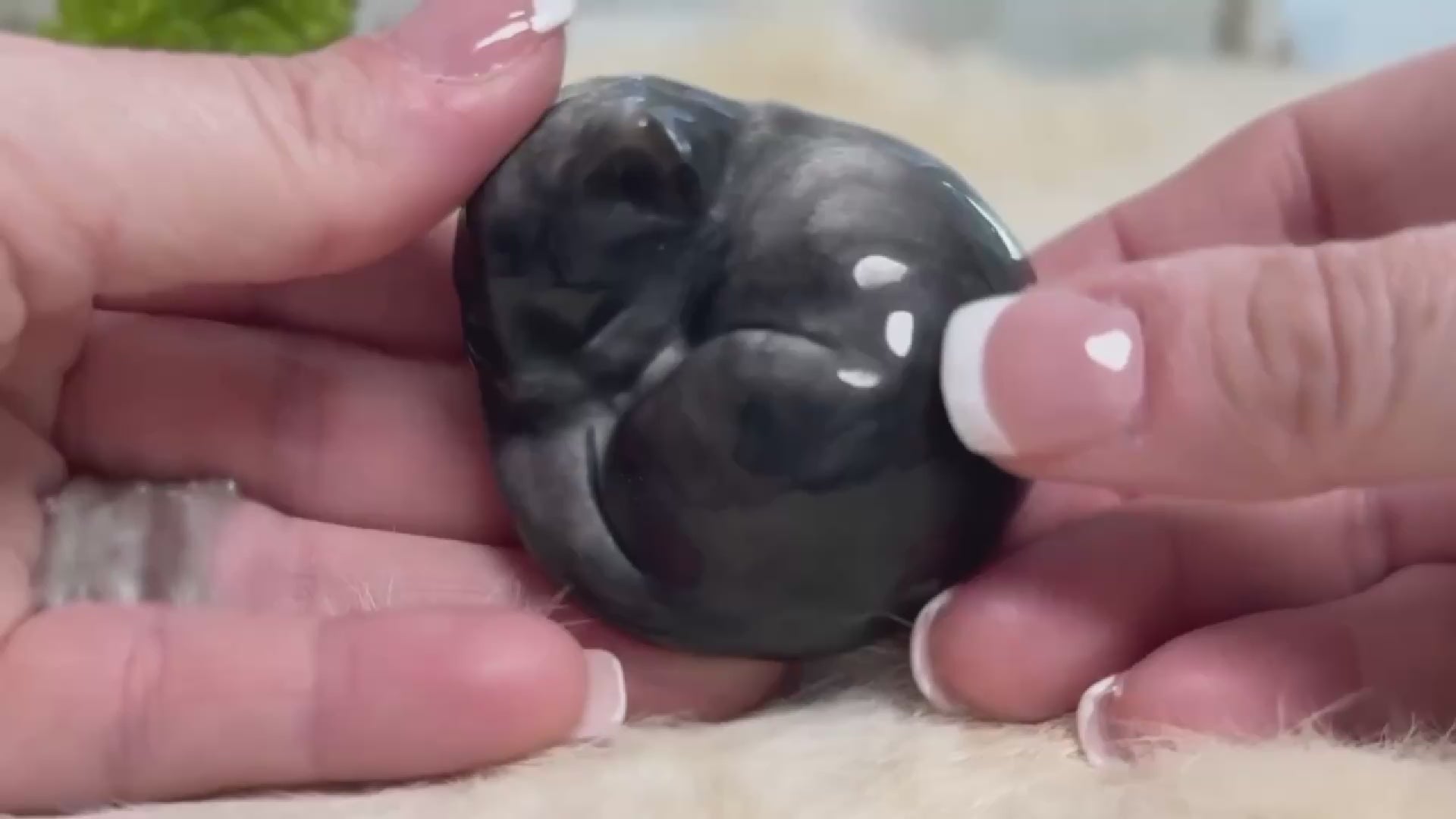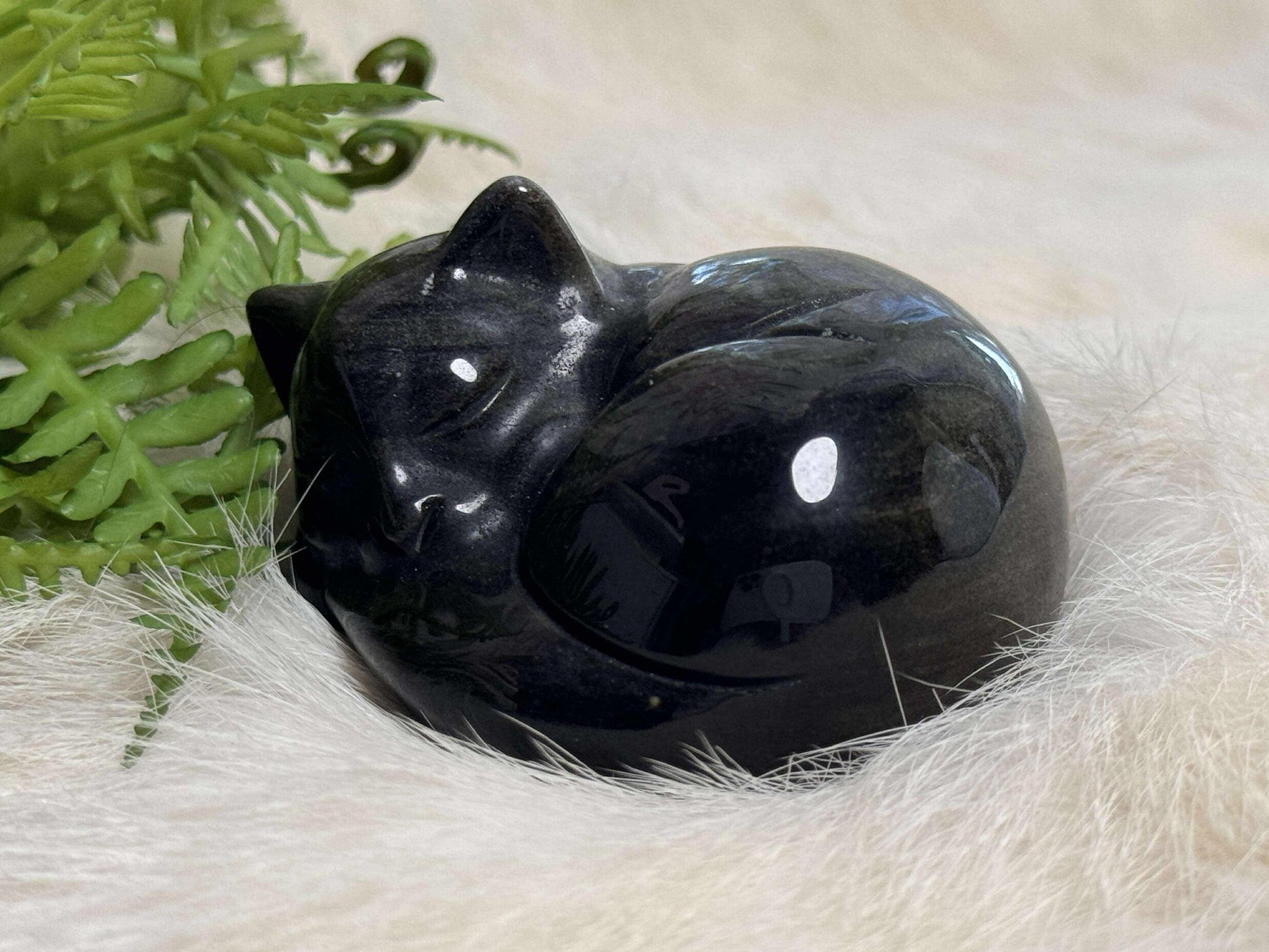 Silver Sheen Obsidian is the Stone of Lunar Protection, helping to clear negative energy, strengthen your psychic boundaries, and illuminate hidden truths. The cat, a spirit guide of intuition, independence, and mystery, transforms this piece into a mystical familiar... perfect for altars, bedside tables, or moonlit meditation spaces.