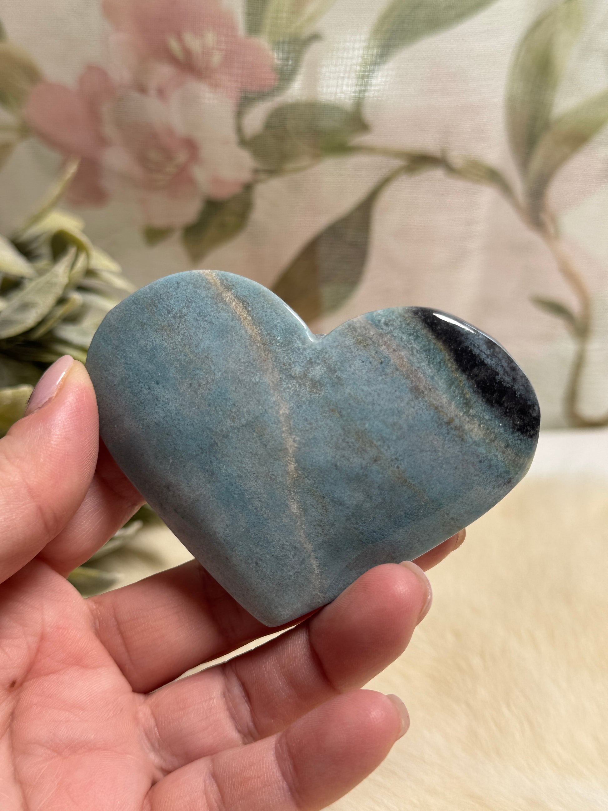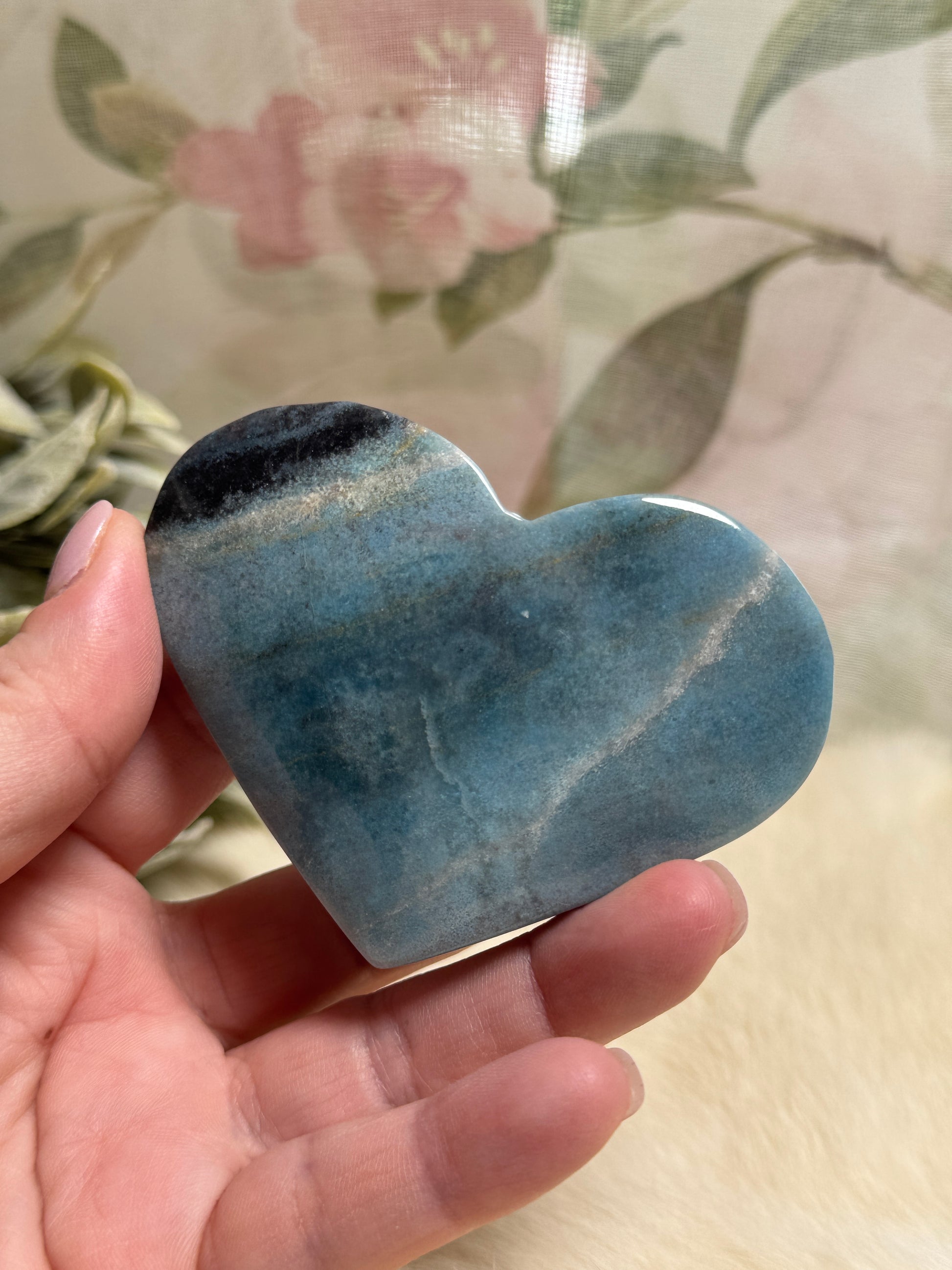This enchanting Trollite Heart is a rare crystal ally for those walking the path of truth and higher understanding. With swirling tones of deep blue, teal, and gentle gold flecks, it mirrors the dance of ocean currents beneath a starlit sky, a visual reminder of the stillness and wisdom that live deep within you.