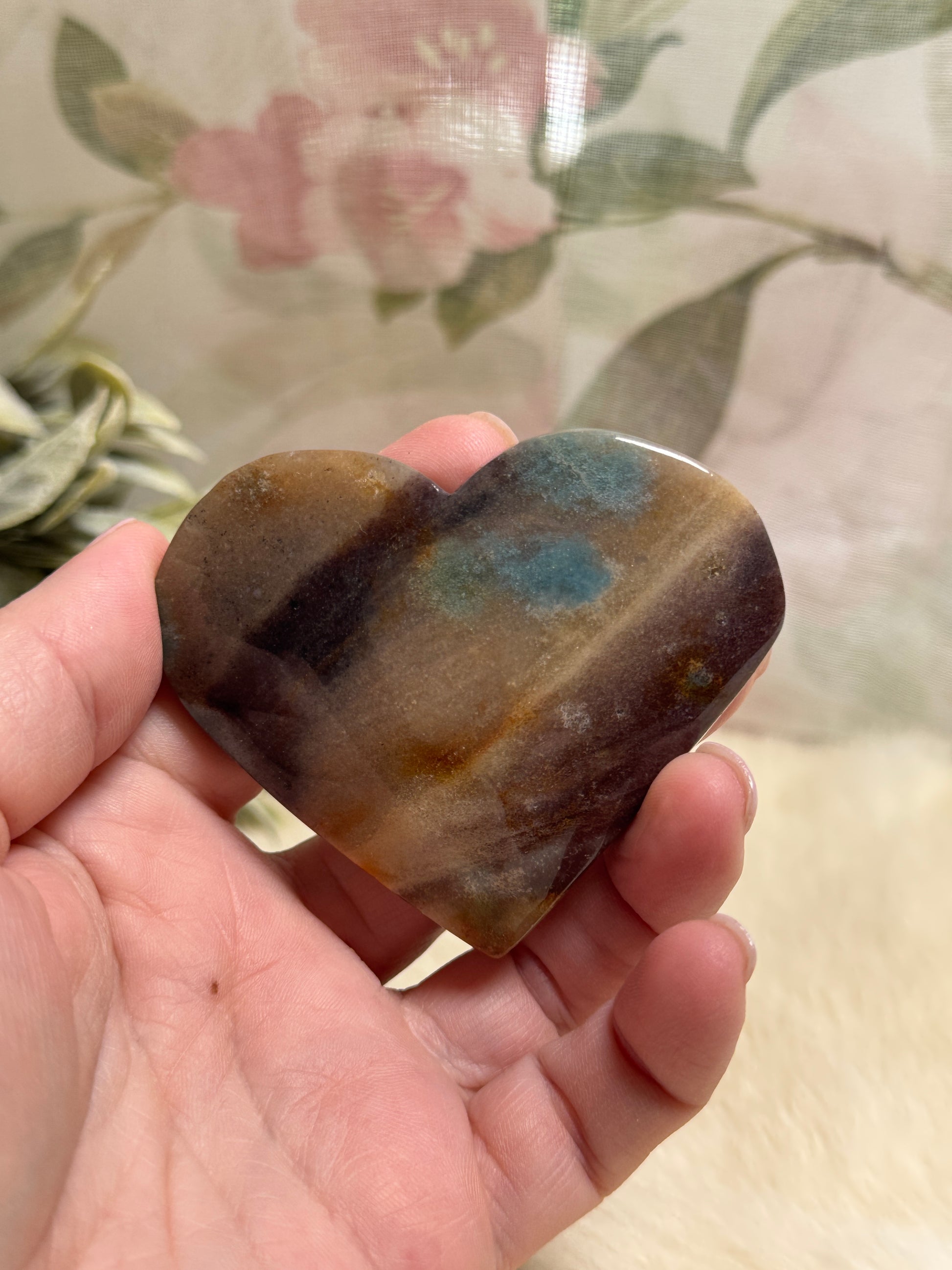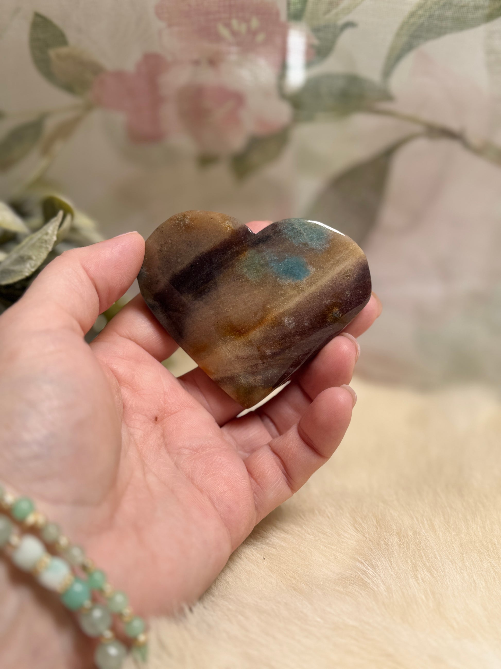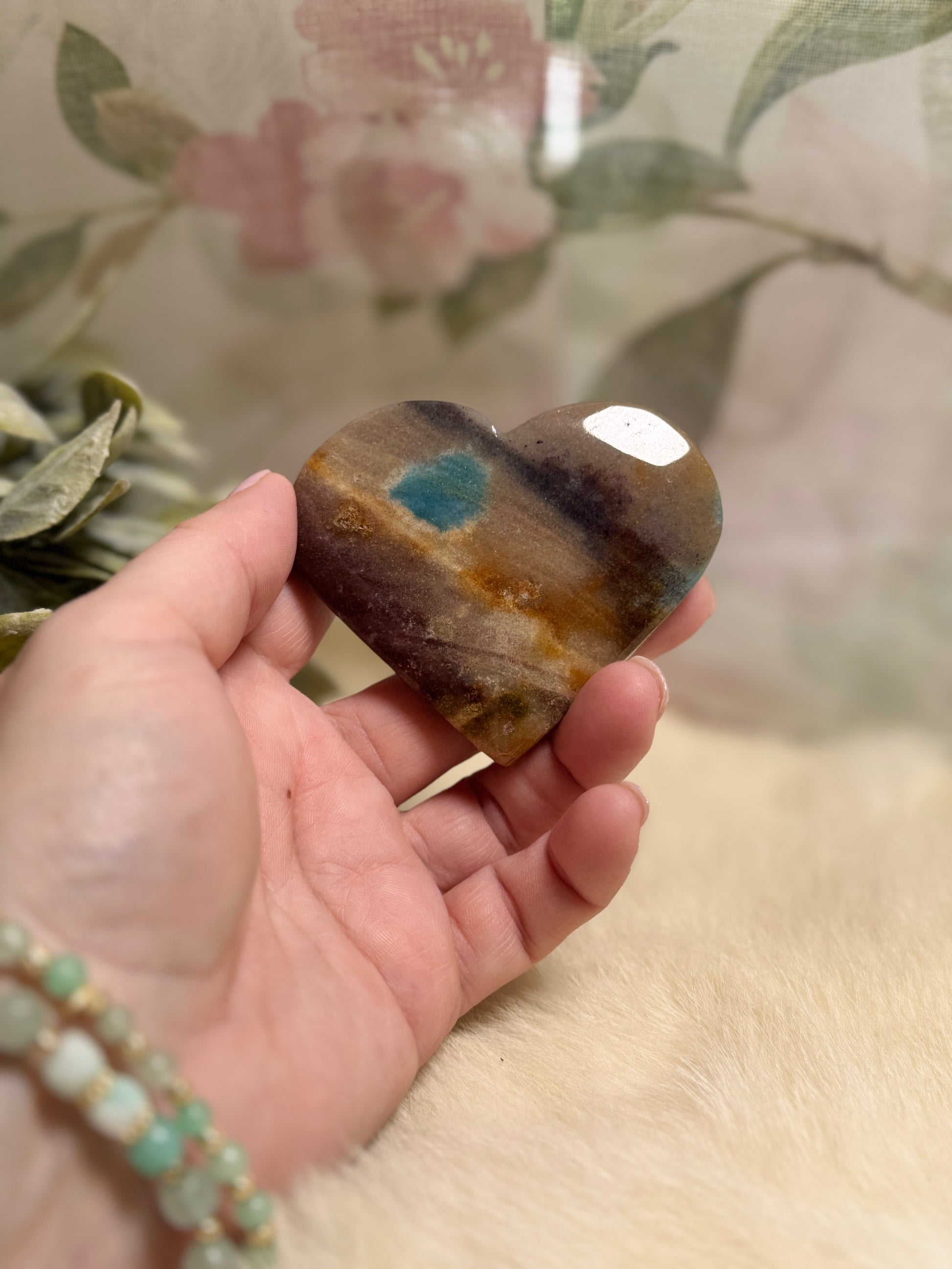 This enchanting Trollite Heart is a rare crystal ally for those walking the path of truth and higher understanding. With swirling tones of deep blue, teal, and gentle gold flecks, it mirrors the dance of ocean currents beneath a starlit sky, a visual reminder of the stillness and wisdom that live deep within you.