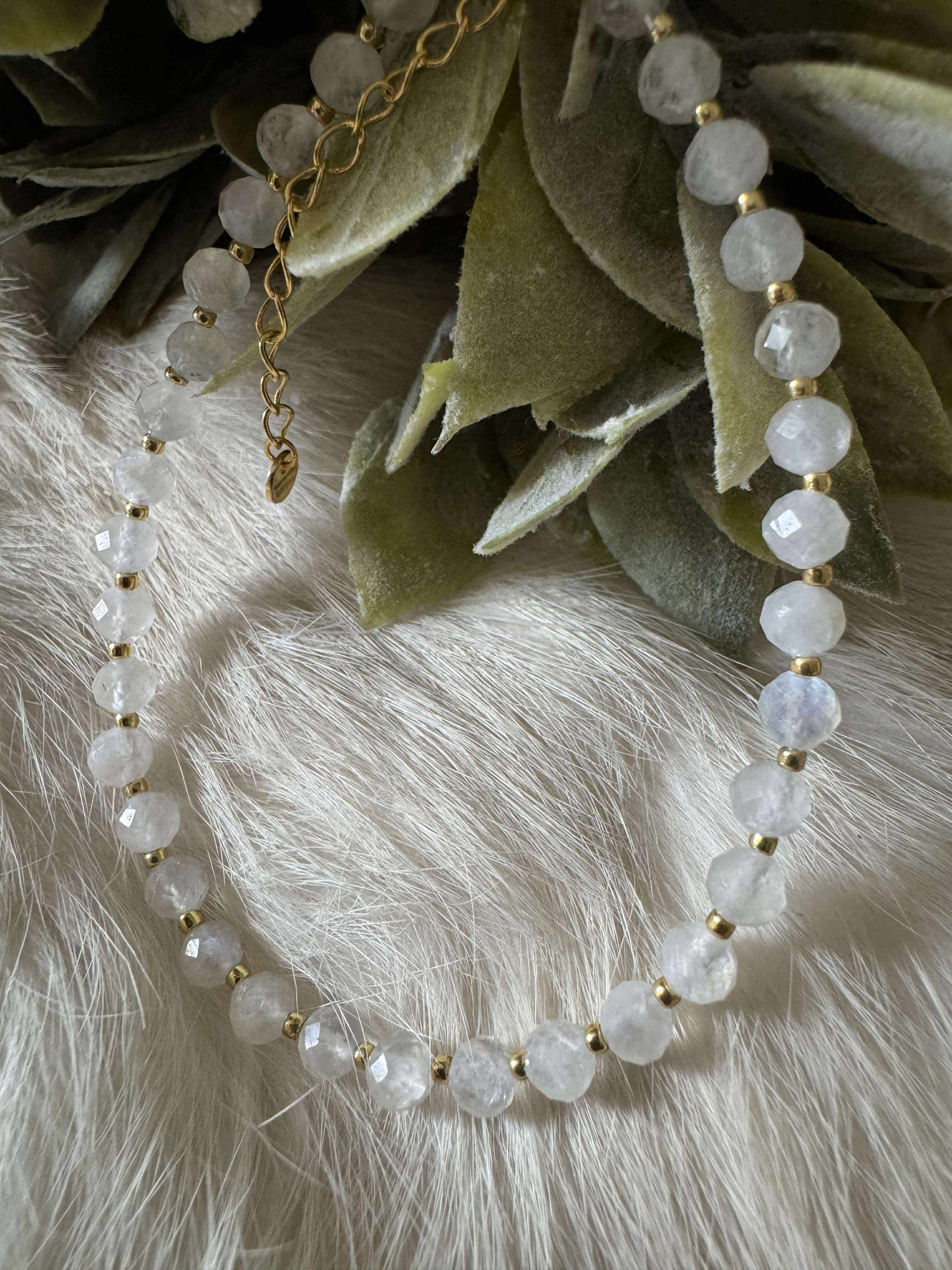 • White Moonstone – A stone of divine feminine energy, it awakens intuition, enhances psychic gifts, and aligns you with the rhythm of lunar cycles. Known as the “Traveler’s Stone,” it offers protection and calm through transitions and new beginnings.